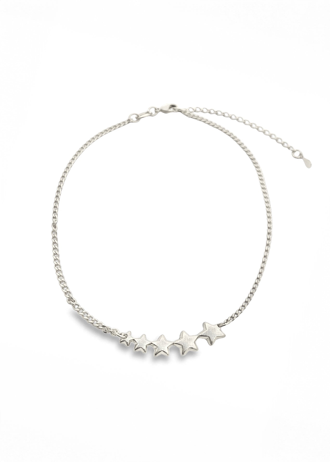 Add a touch of celestial charm to your jewelry collection with this 18k Rhodium filled open star link anklet.
