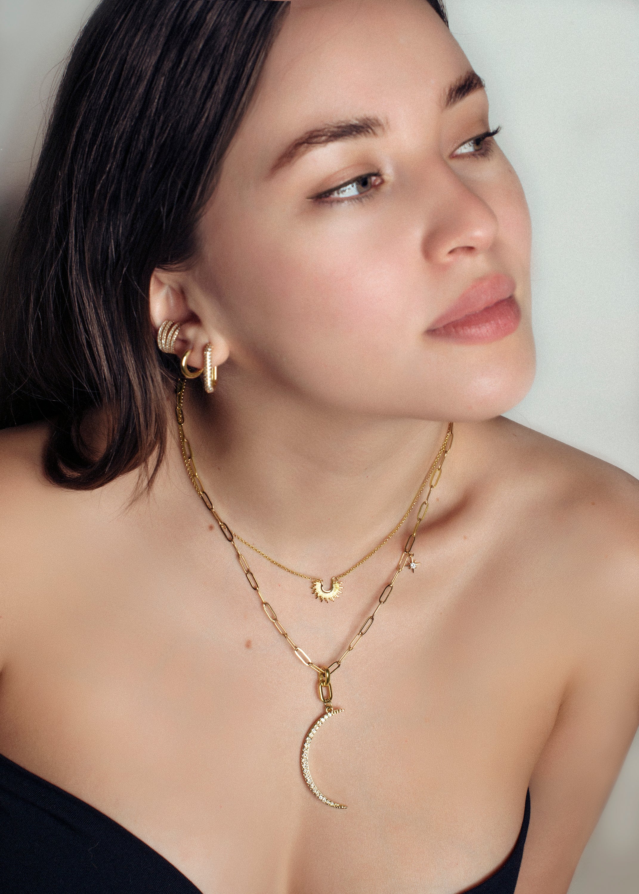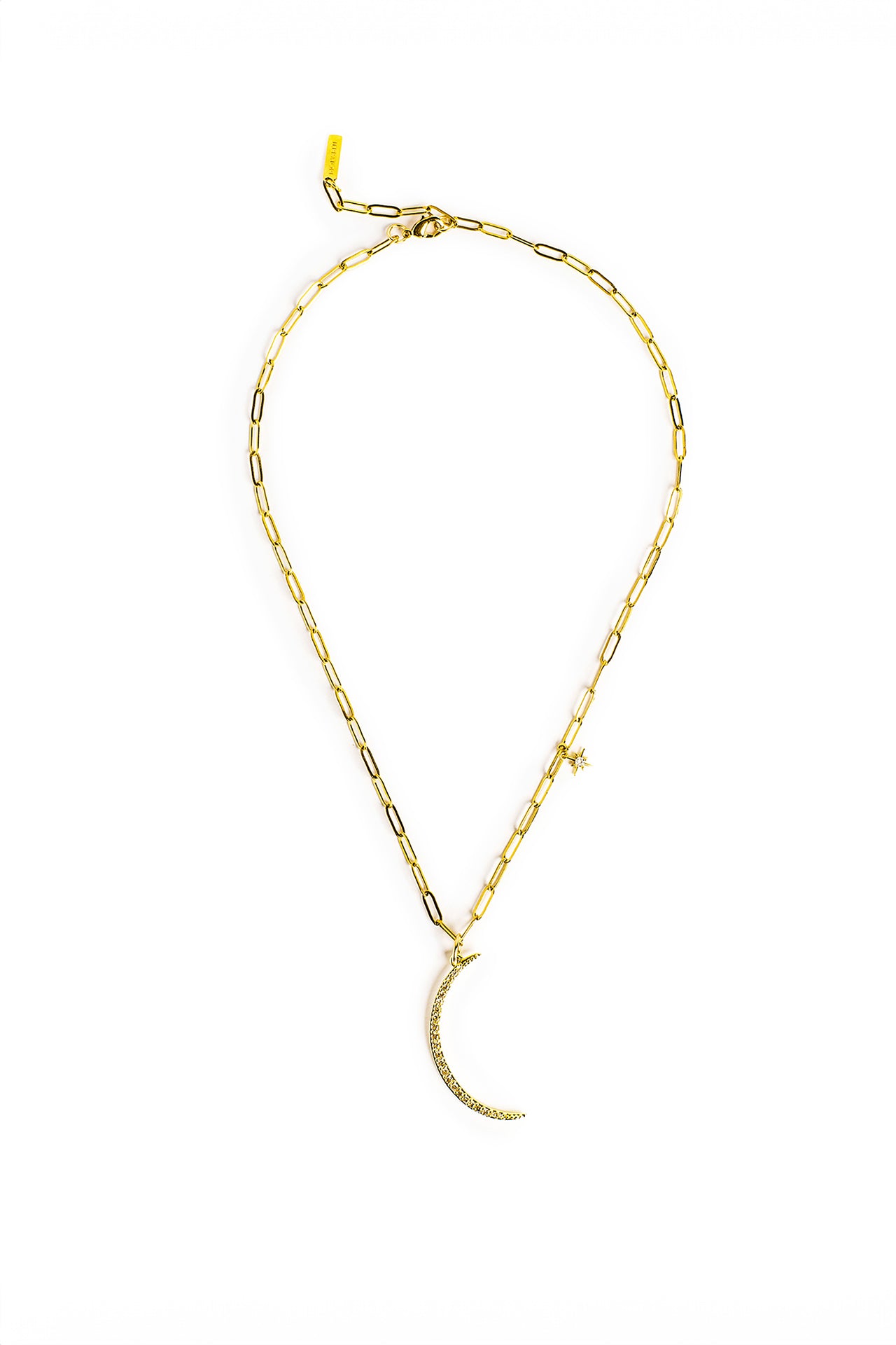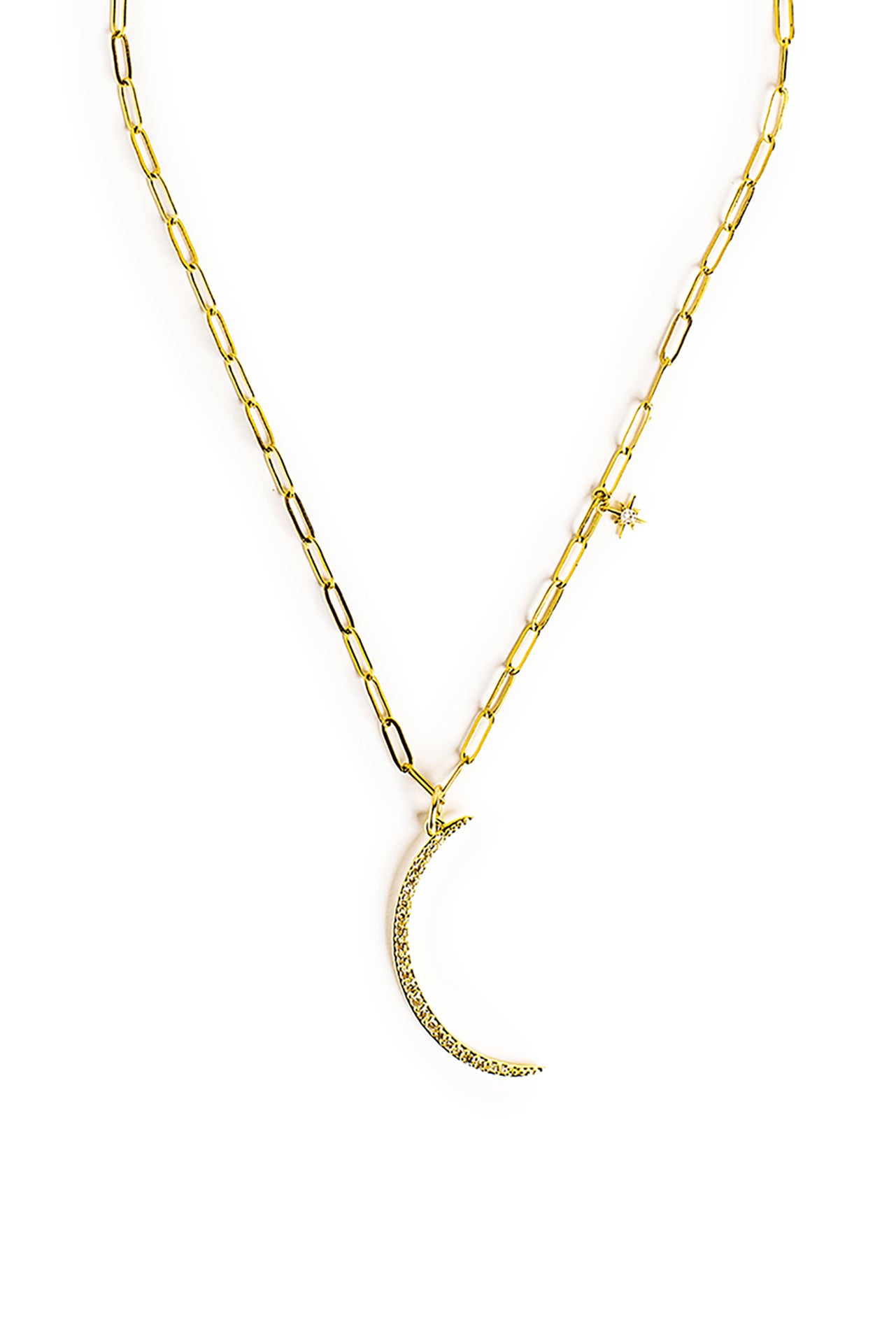 - Gold or Rhodium filled Cubic Zirconia moon pendant