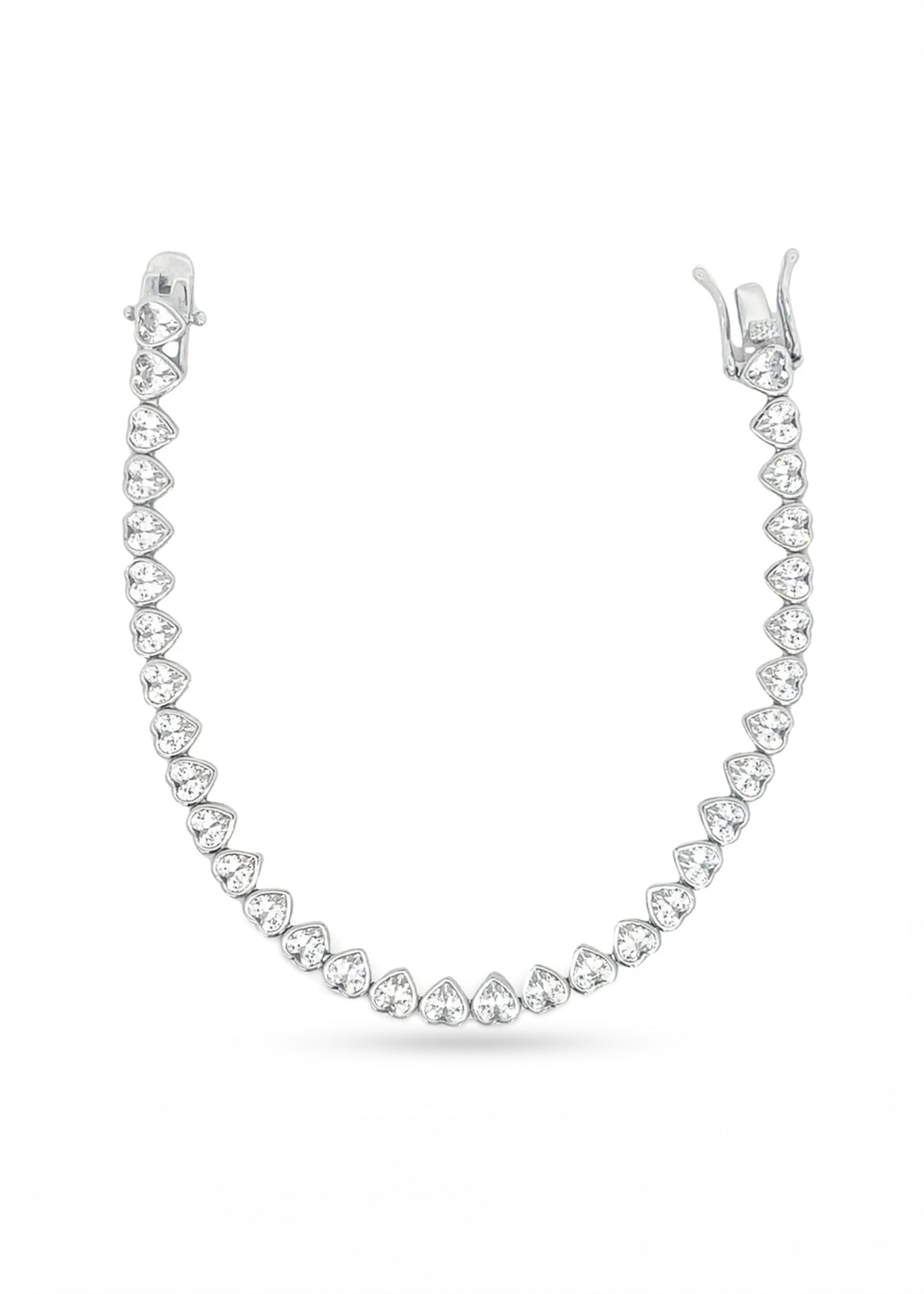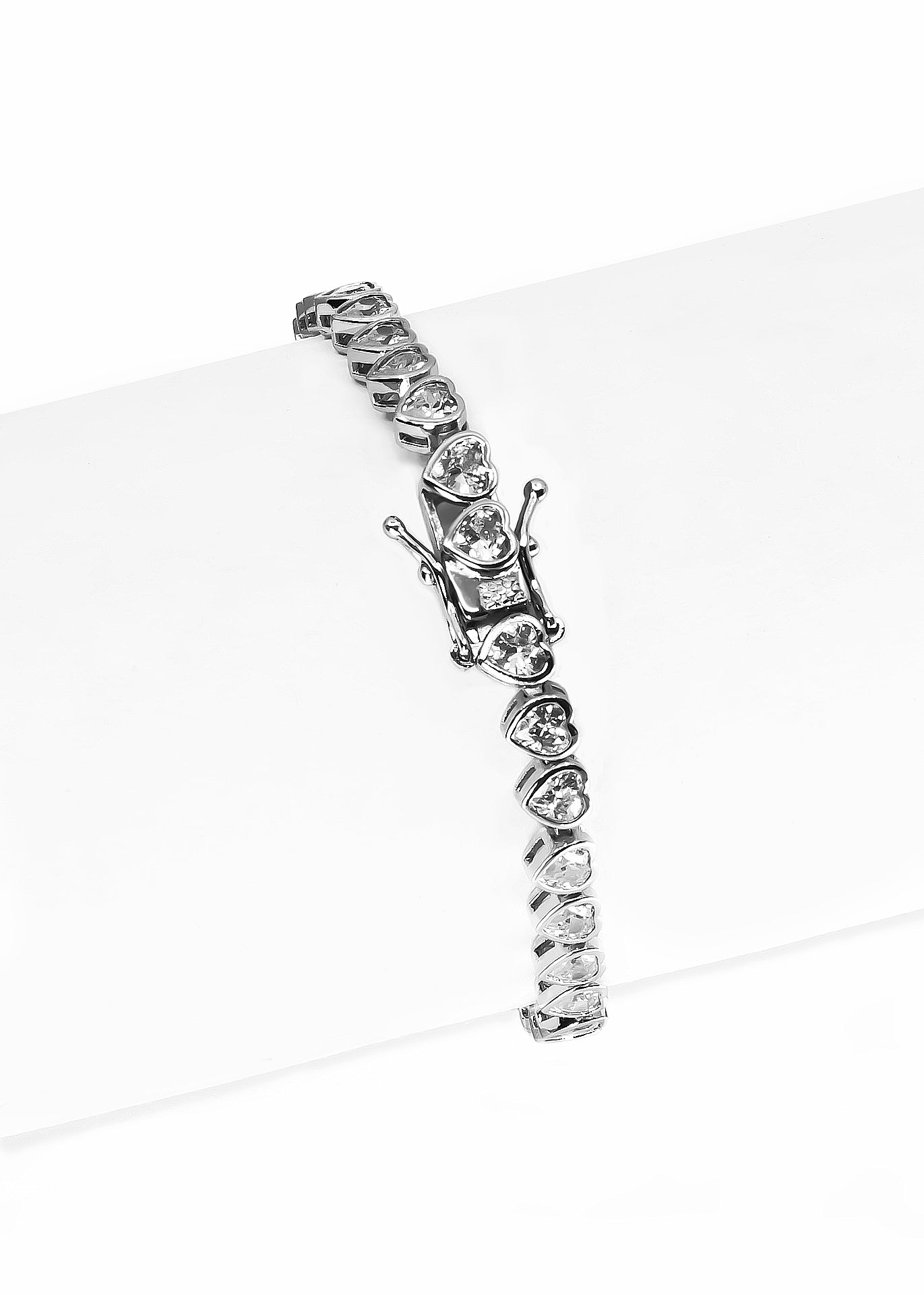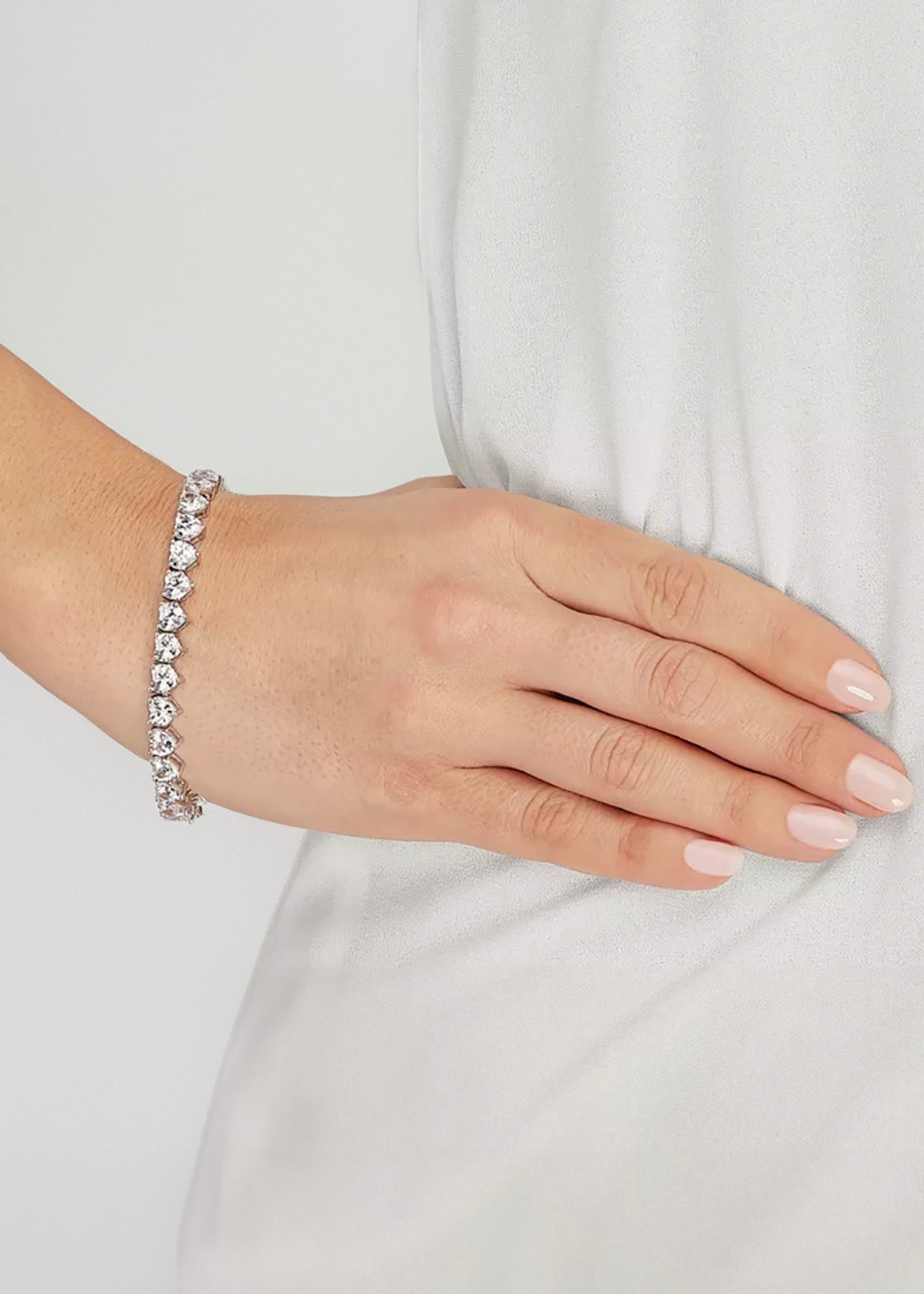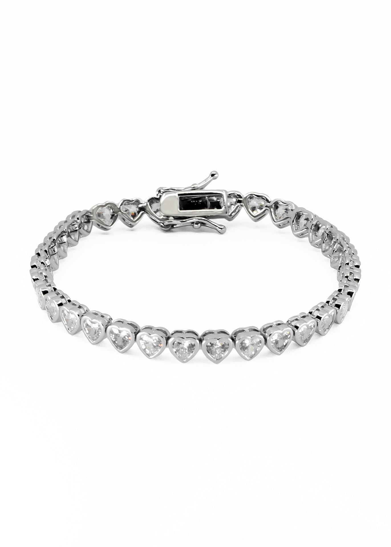 Tennis bracelets, anyone? This rhodium plated Sparkling Tennis Bracelet features heart line of clear cubic zirconia to make a statement fit for any occasion. Wear it on its own or stack bracelets of different colors and metal finishes for a modern look.