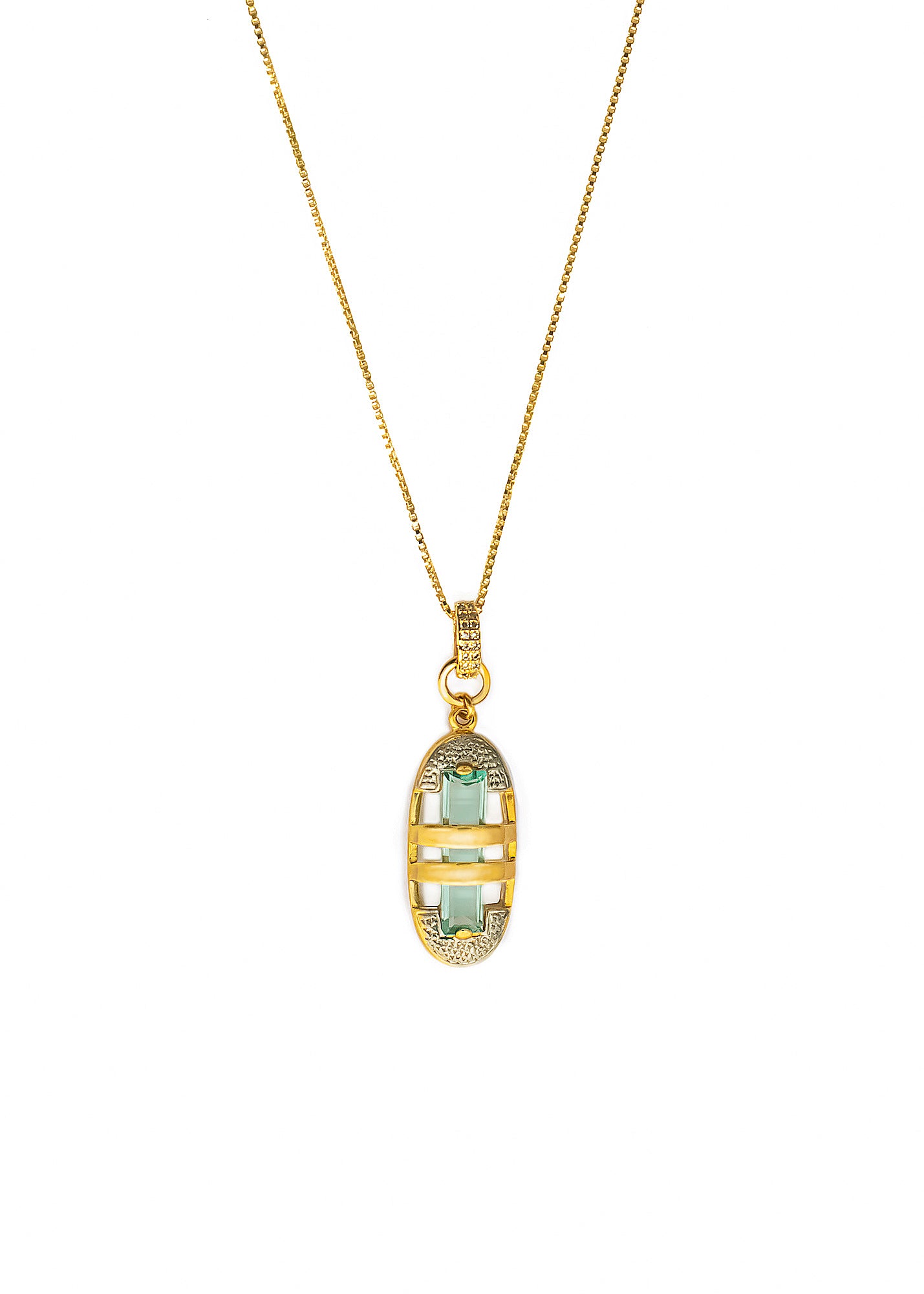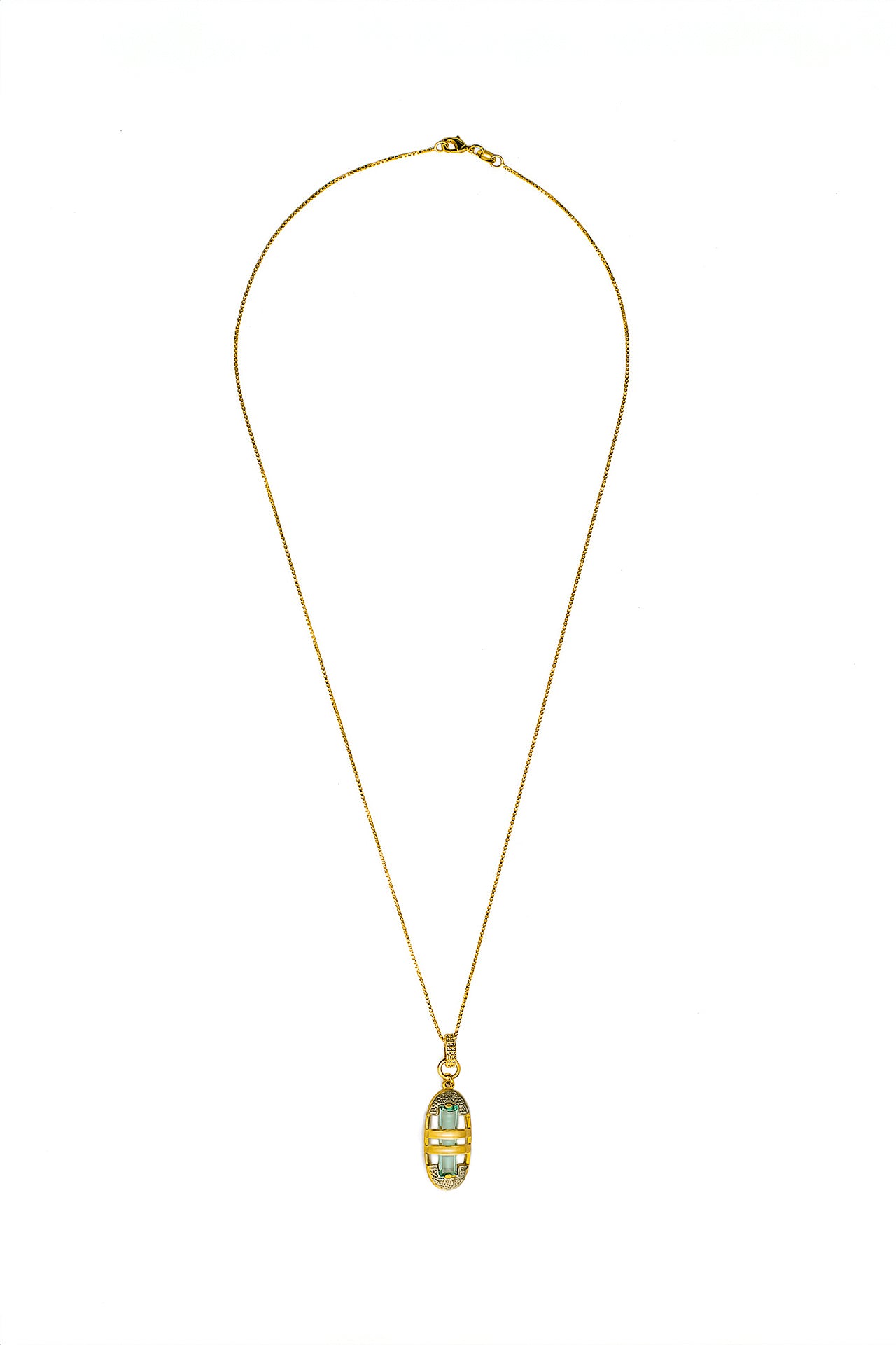 The combination of this radiant 18K gold plated chain and the serene blue quartz pendant creates a harmonious contrast, evoking a sense of timeless elegance and understated luxury.