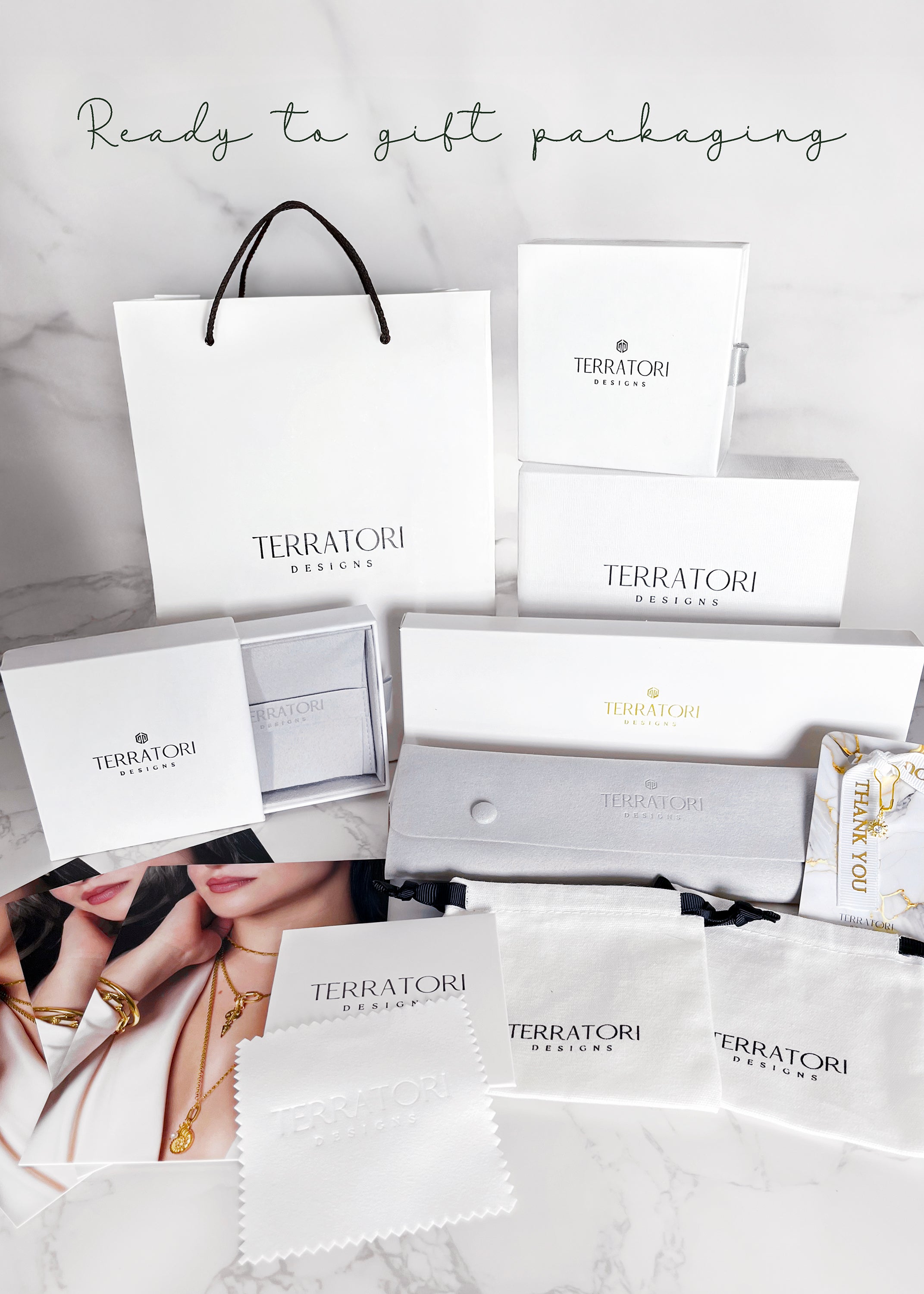 Our jewelry is best stored in its original pouch for safe keeping (on the rare days you decide not to wear it).