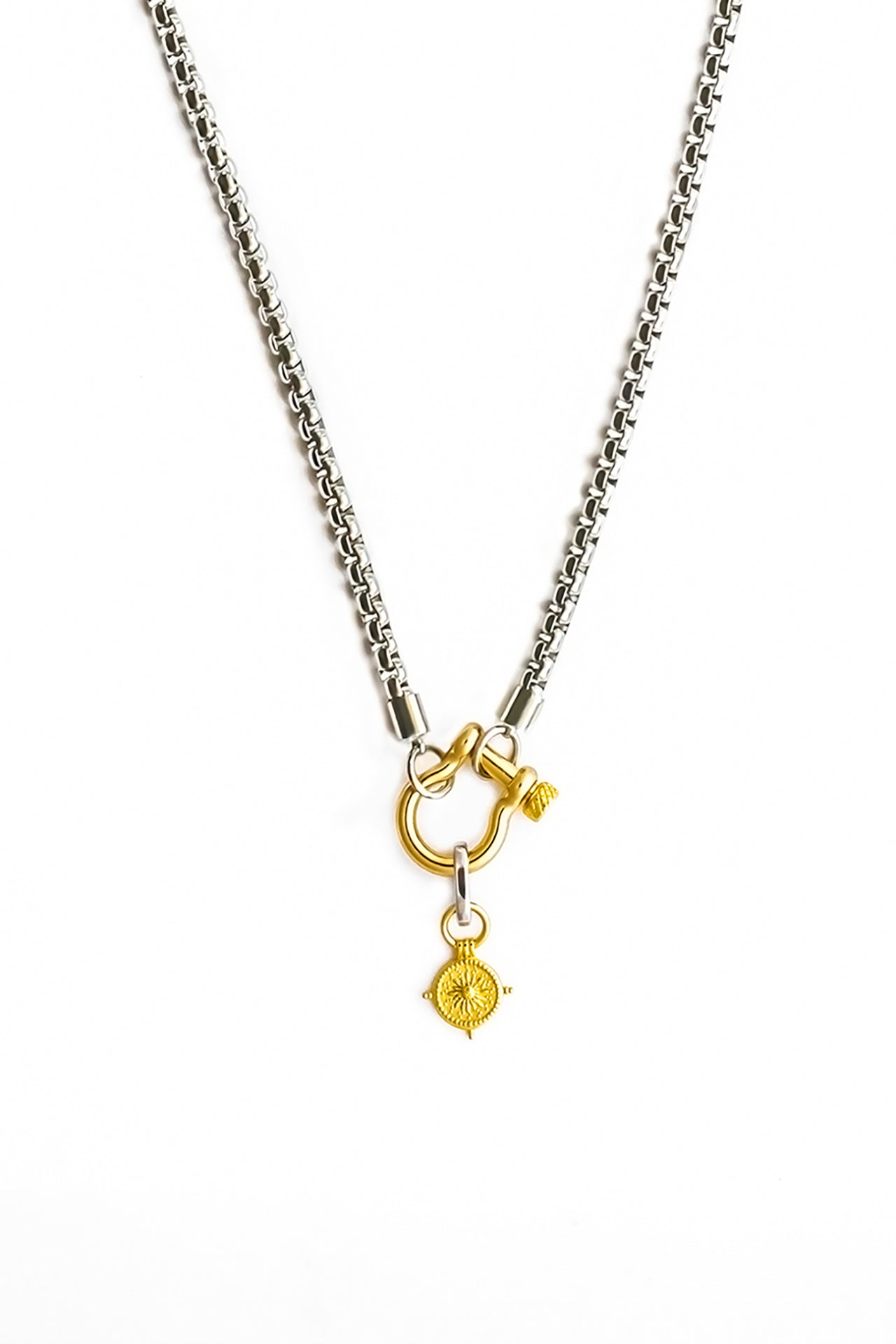 Introducing this fantastic Horseshoe 18k gold plated stainless steel lock chain with a charismatic charm that dance with every movement.