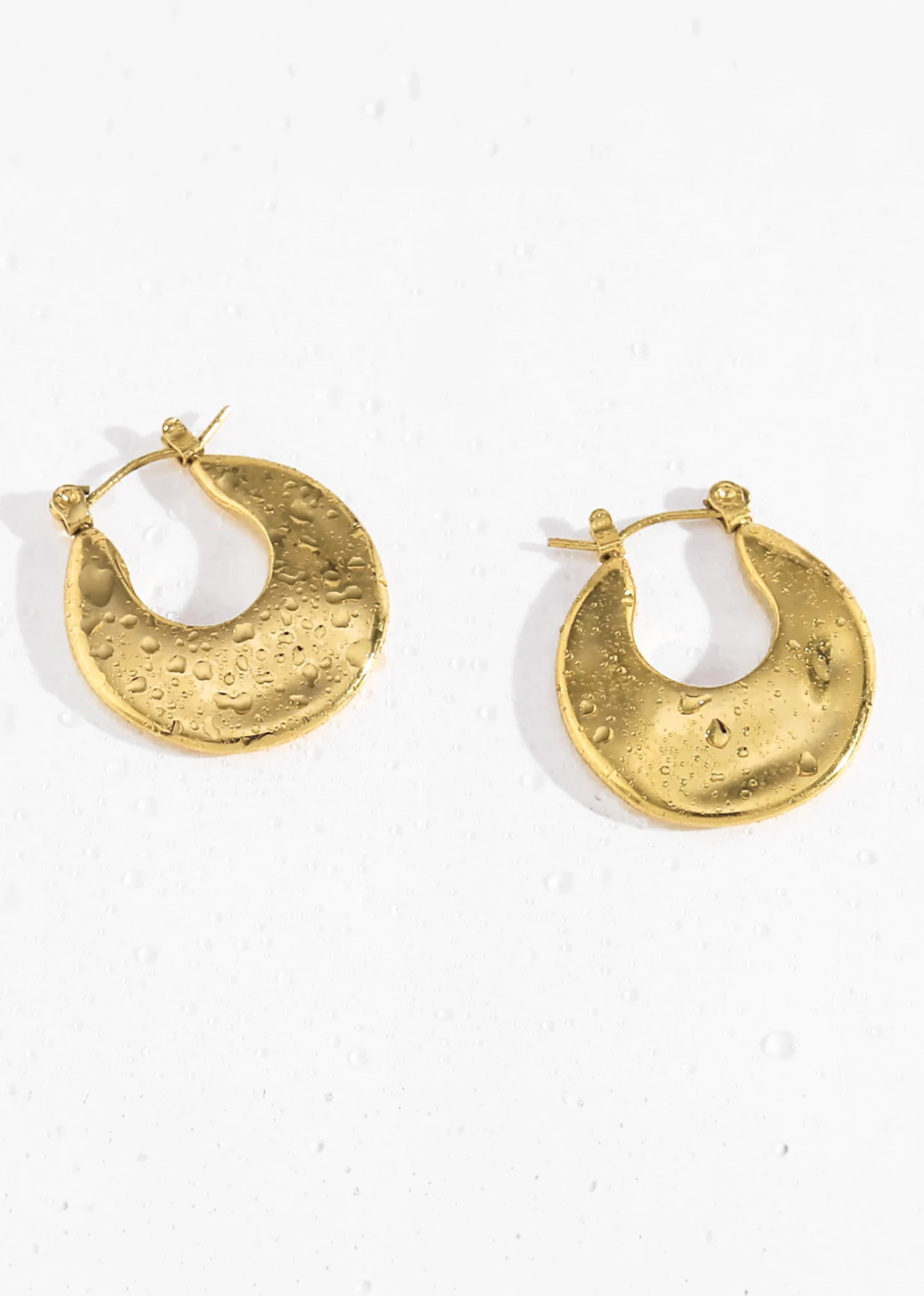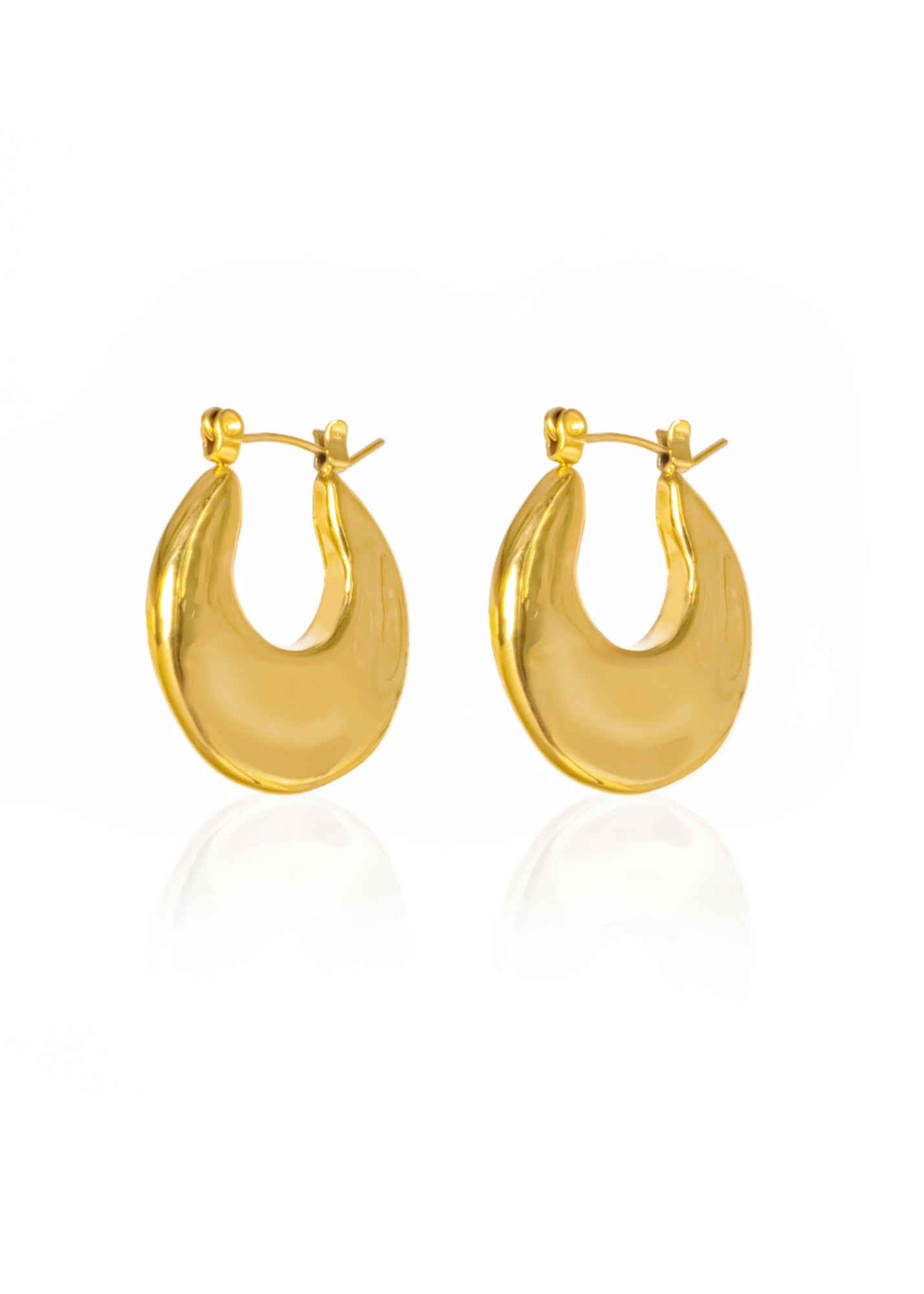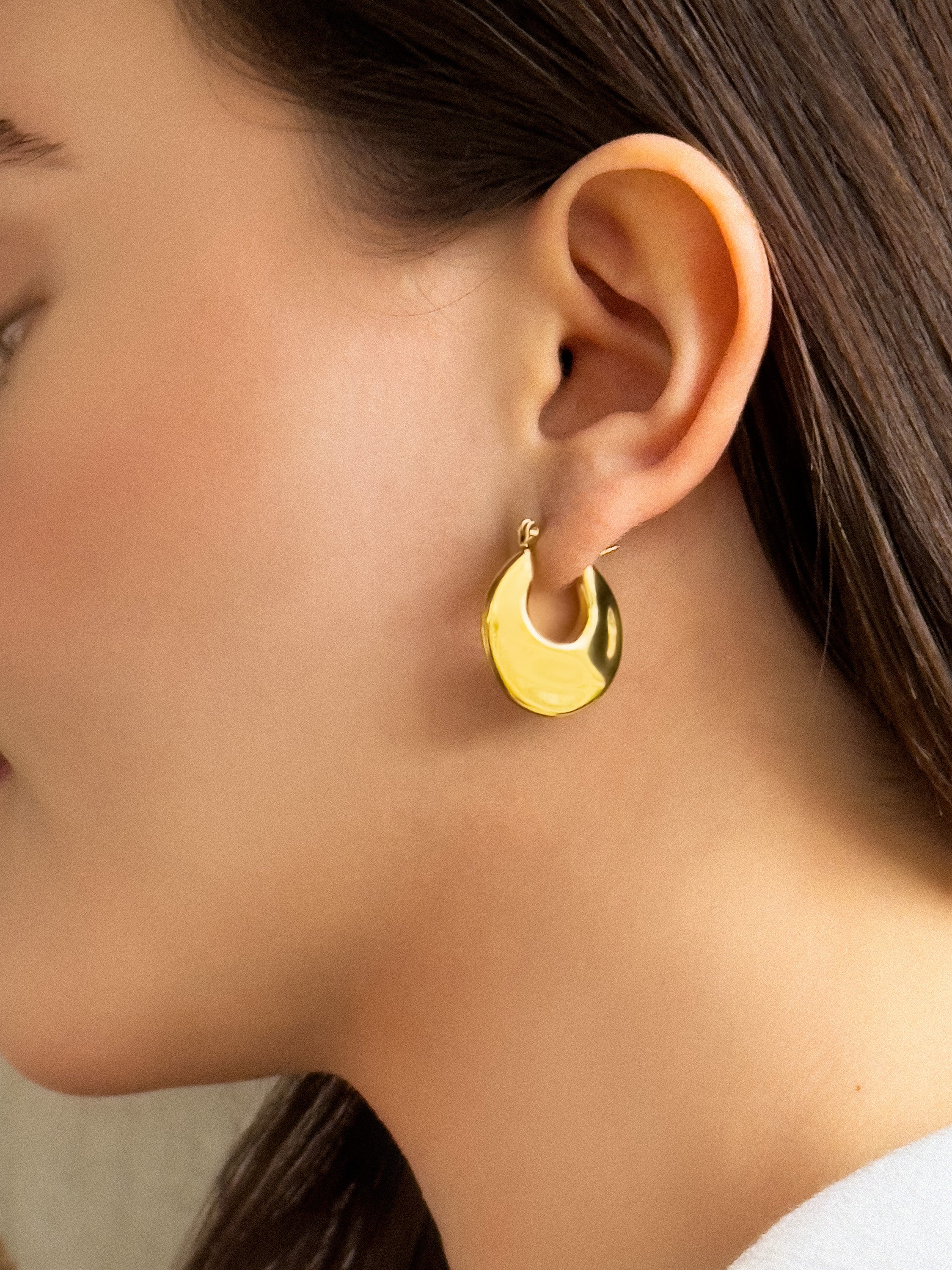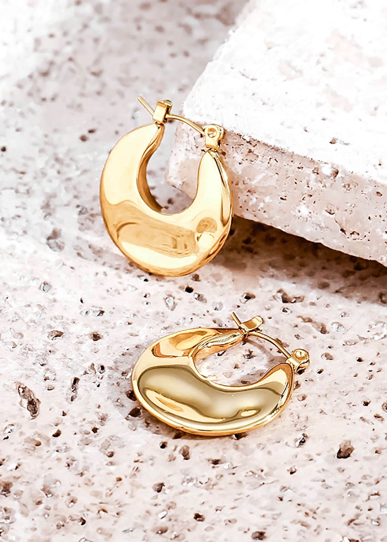 In simplicity, beauty emerges, unadorned. Gleaming 18K gold plated hoop earrings are made modern with a flat, understated edge ideal for everyday wear.