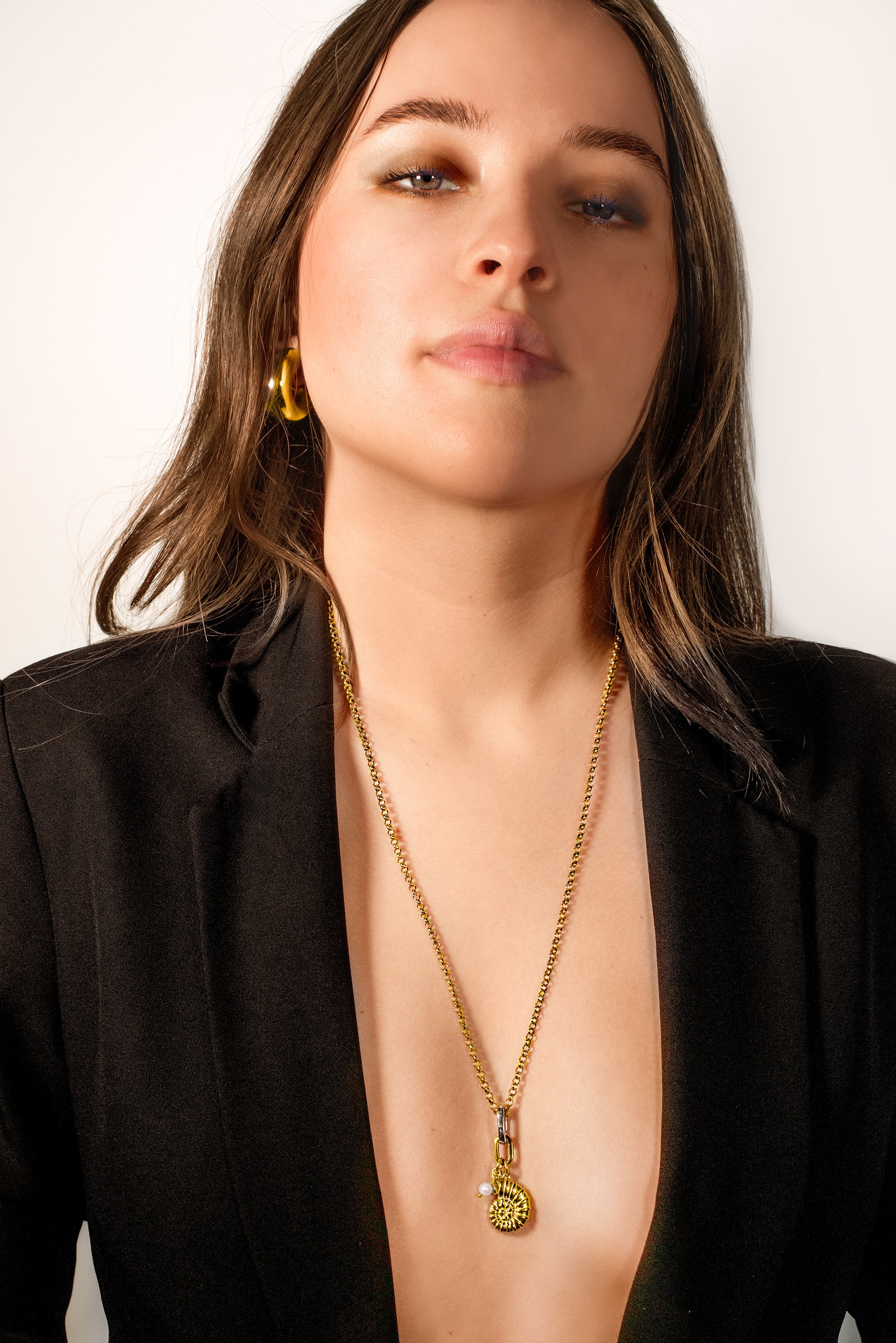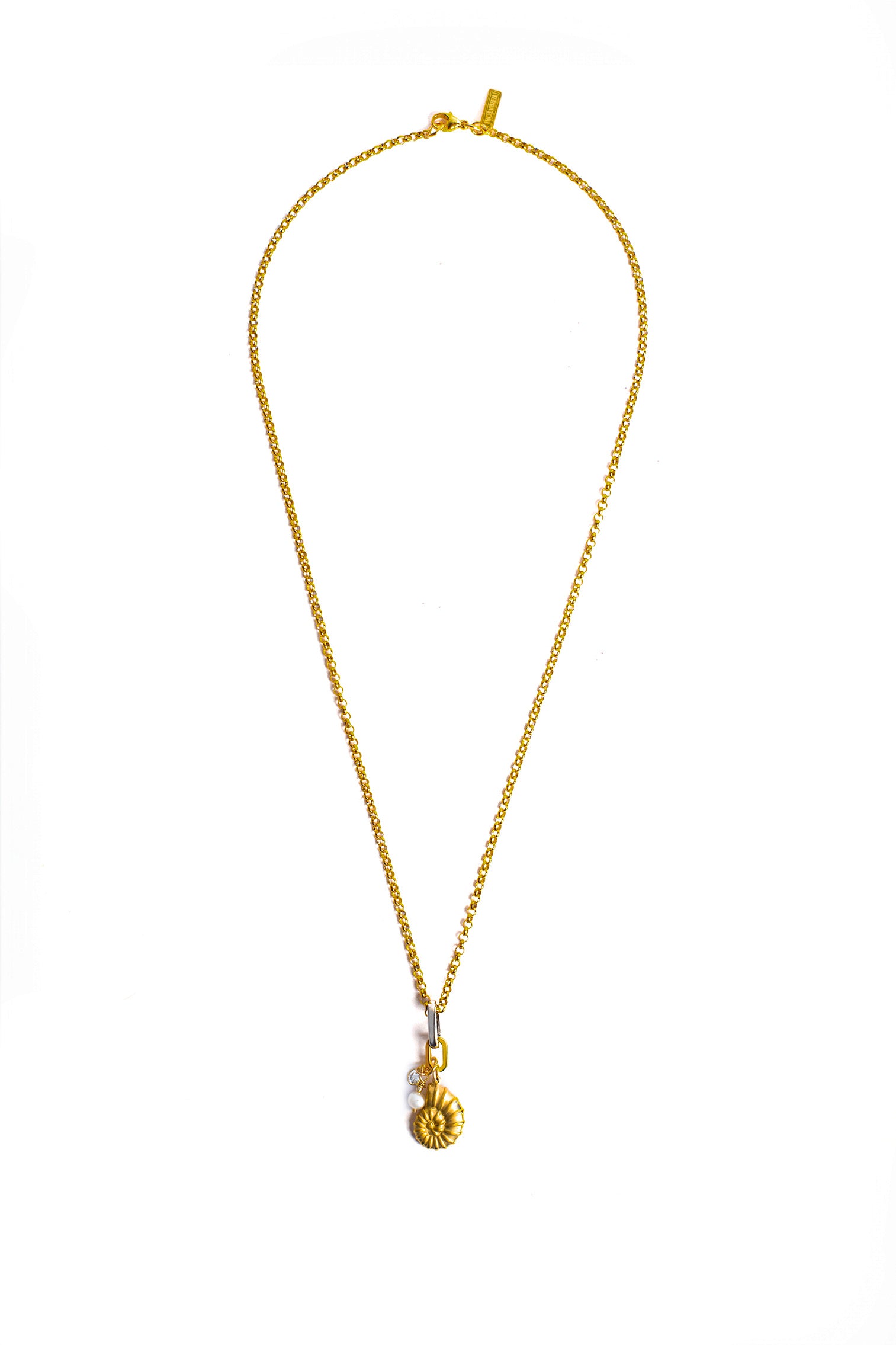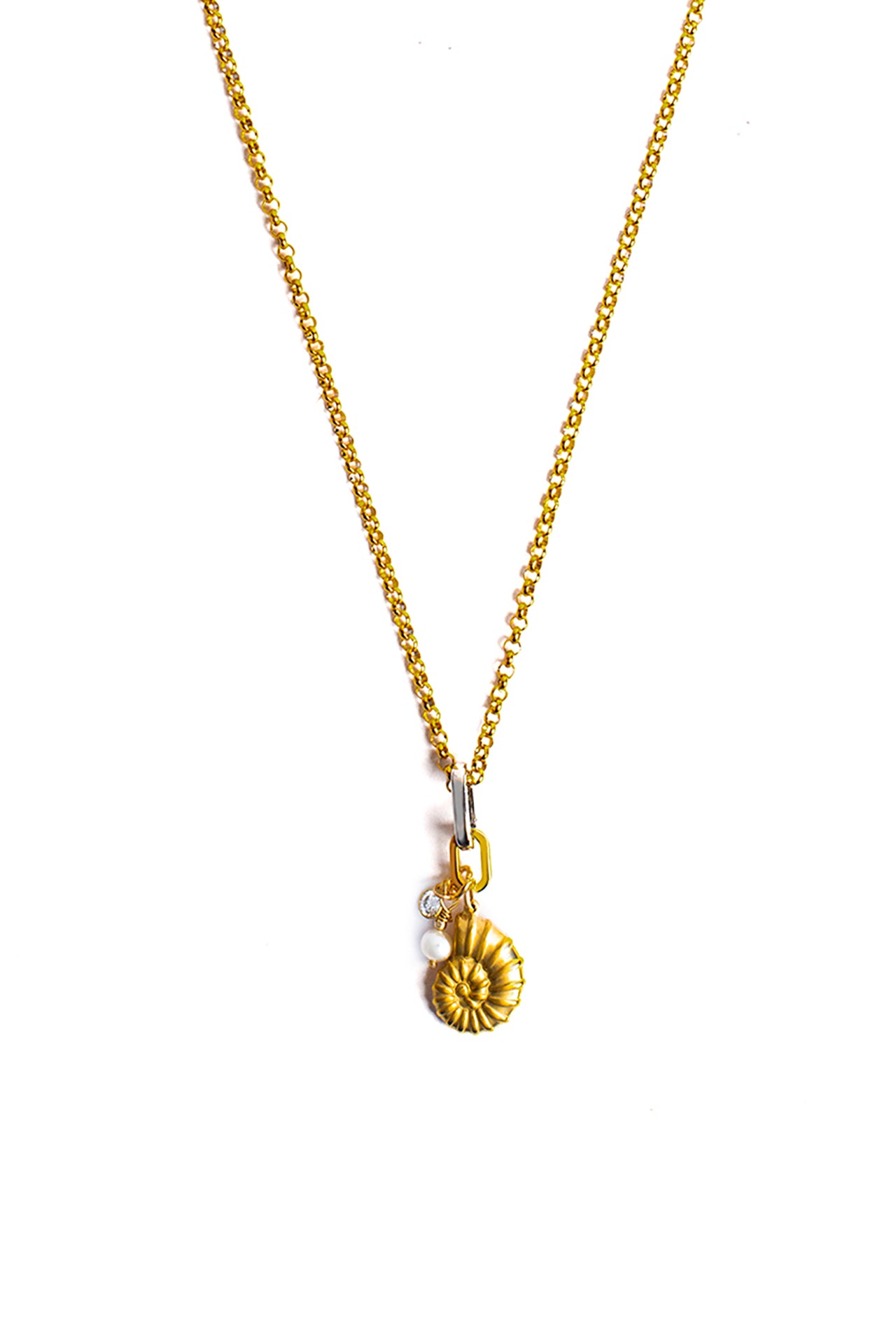 Summer style comes to life with our fun and playful Nautilus Necklace. Featuring a golden shaped shell pendant, a tiny zircon and a natural freshwater pearl accompany it on a beautiful 18K gold plated stainless steel rolo chain, this piece is perfect for stacking and easy to wear for every summer occasion.