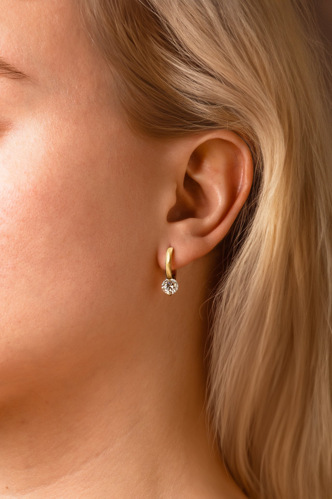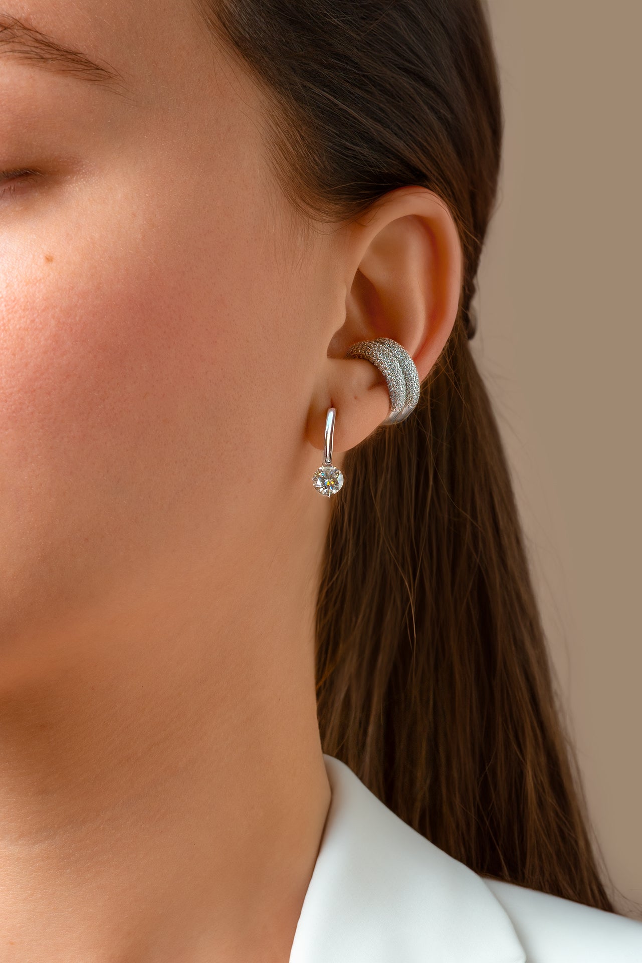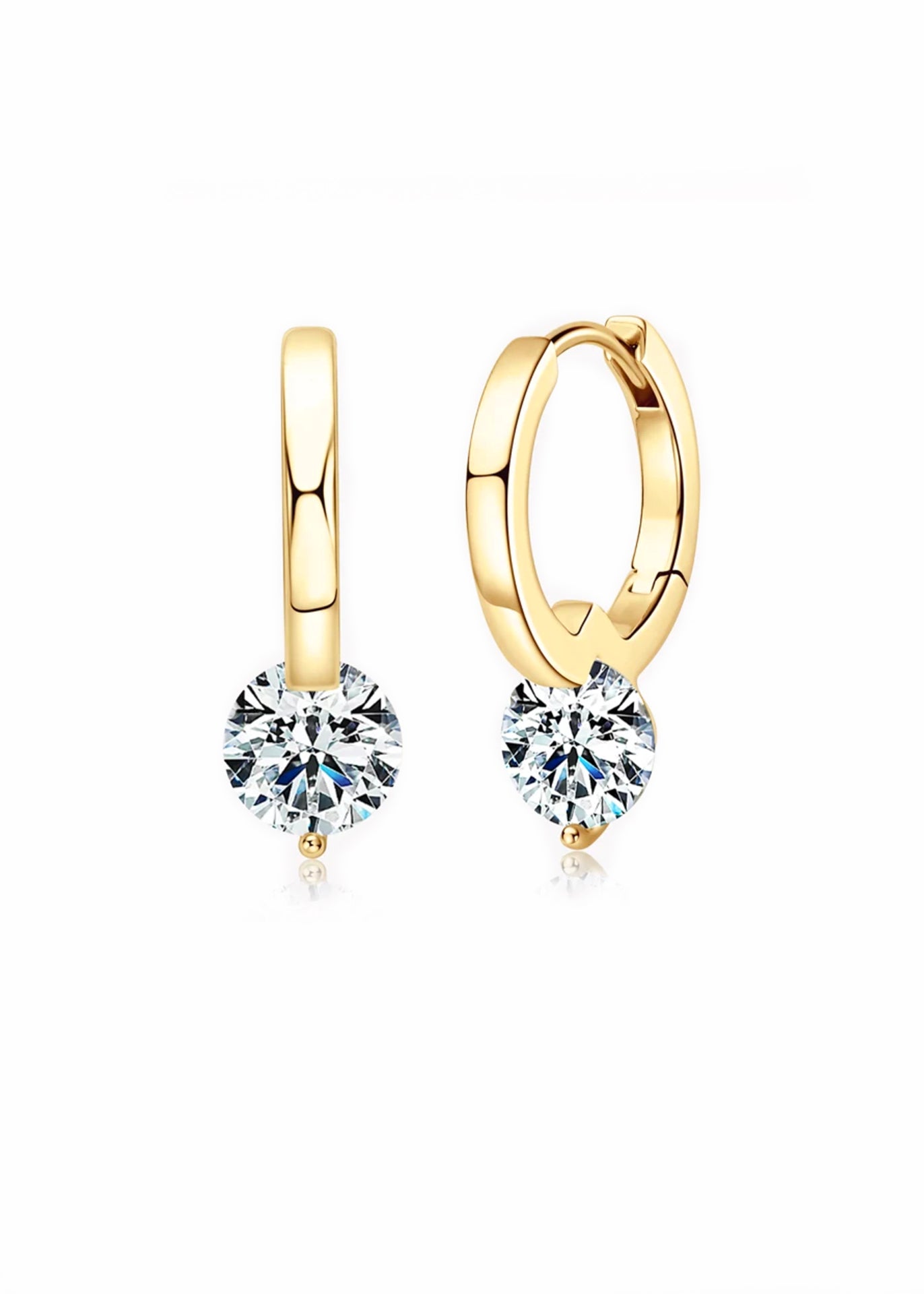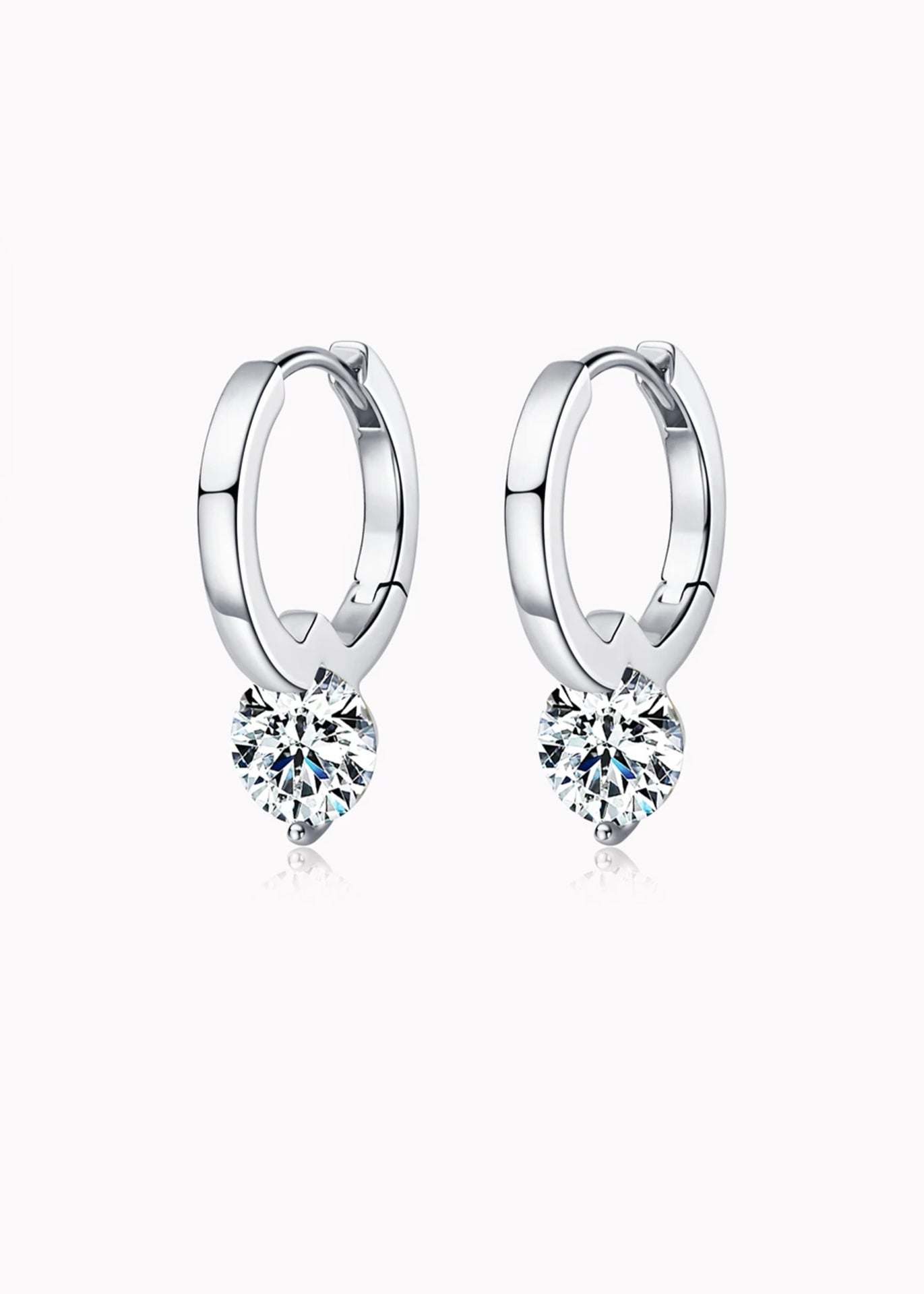 Crafted from 925 Sterling Silver with a high polish finish, these earrings offer lasting shine. The 1.0ct round cut Moissanite stones set in a classic hoop design make these earrings a timeless accessory.