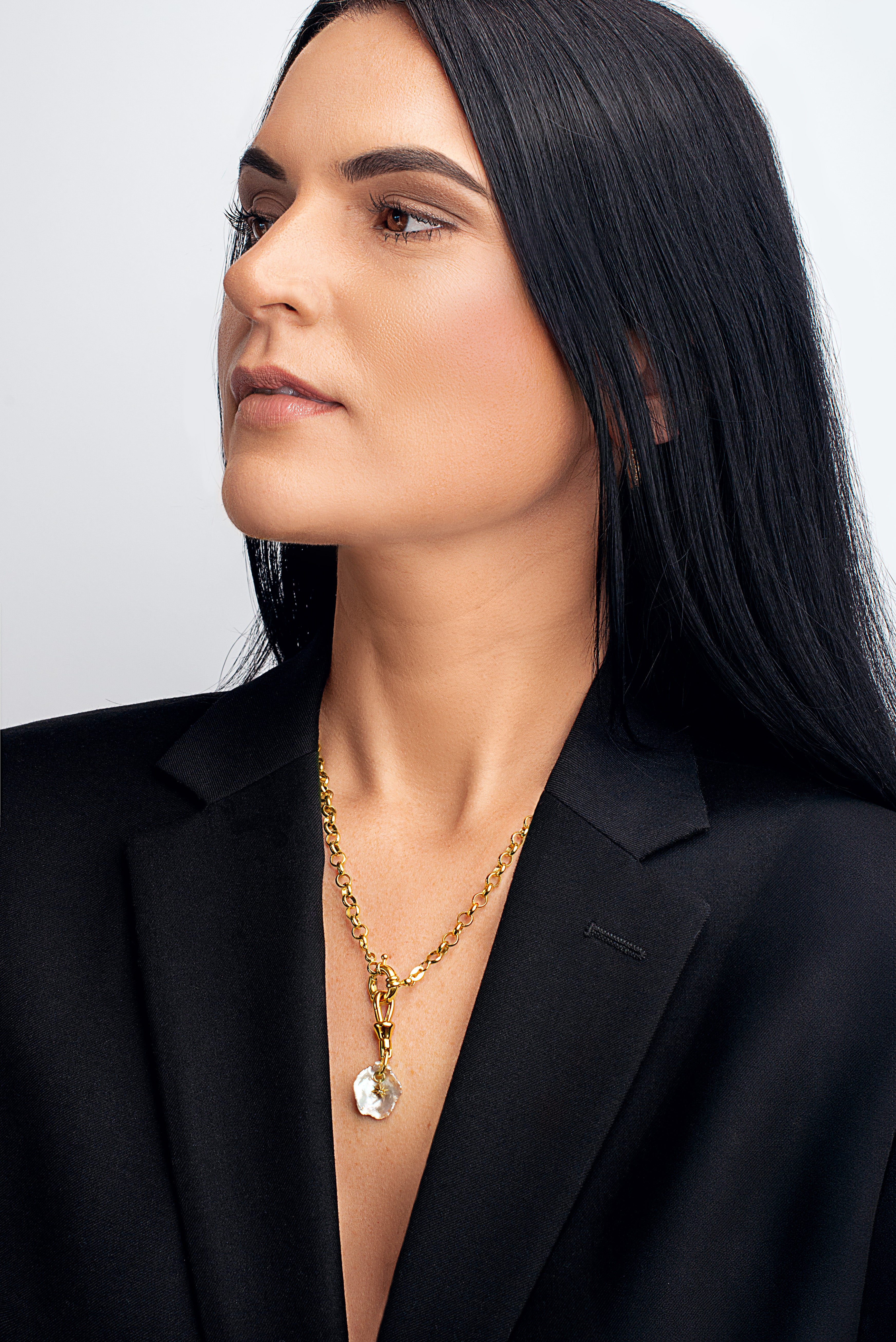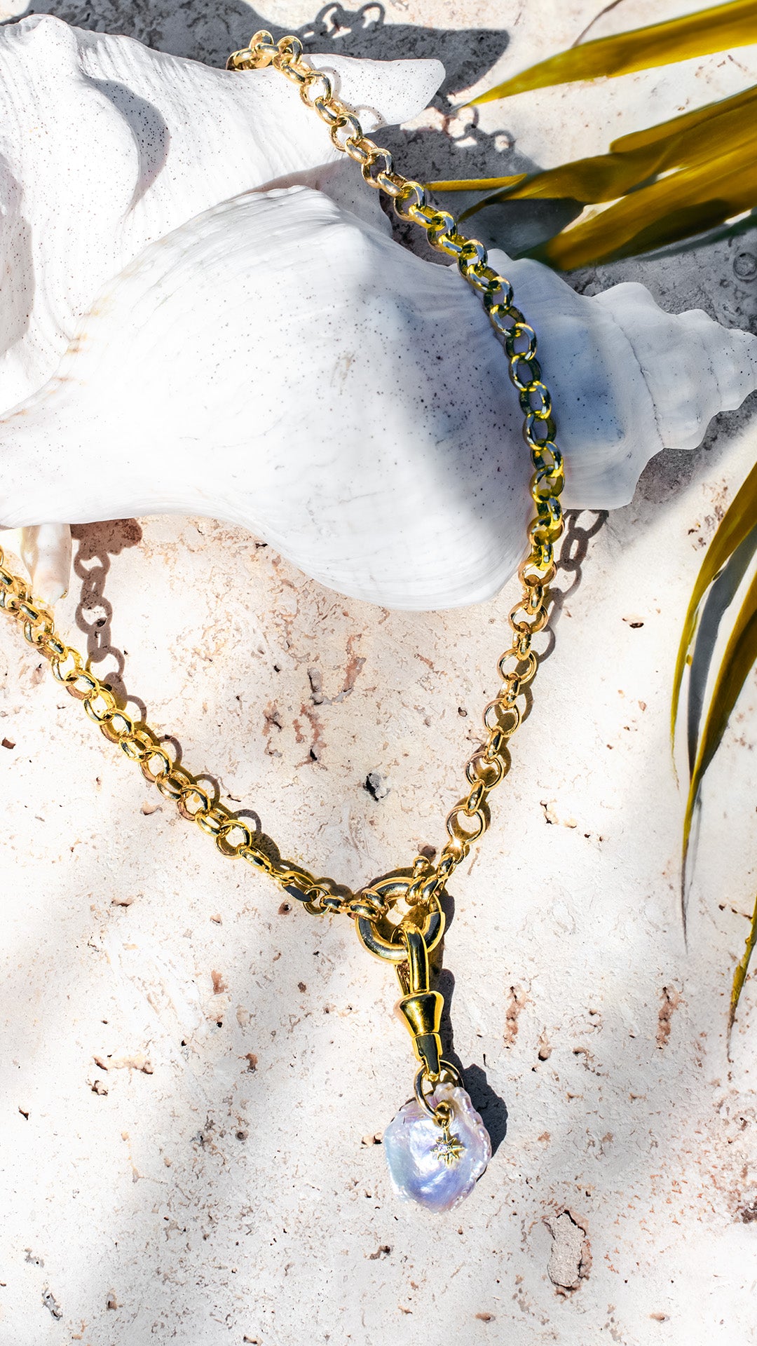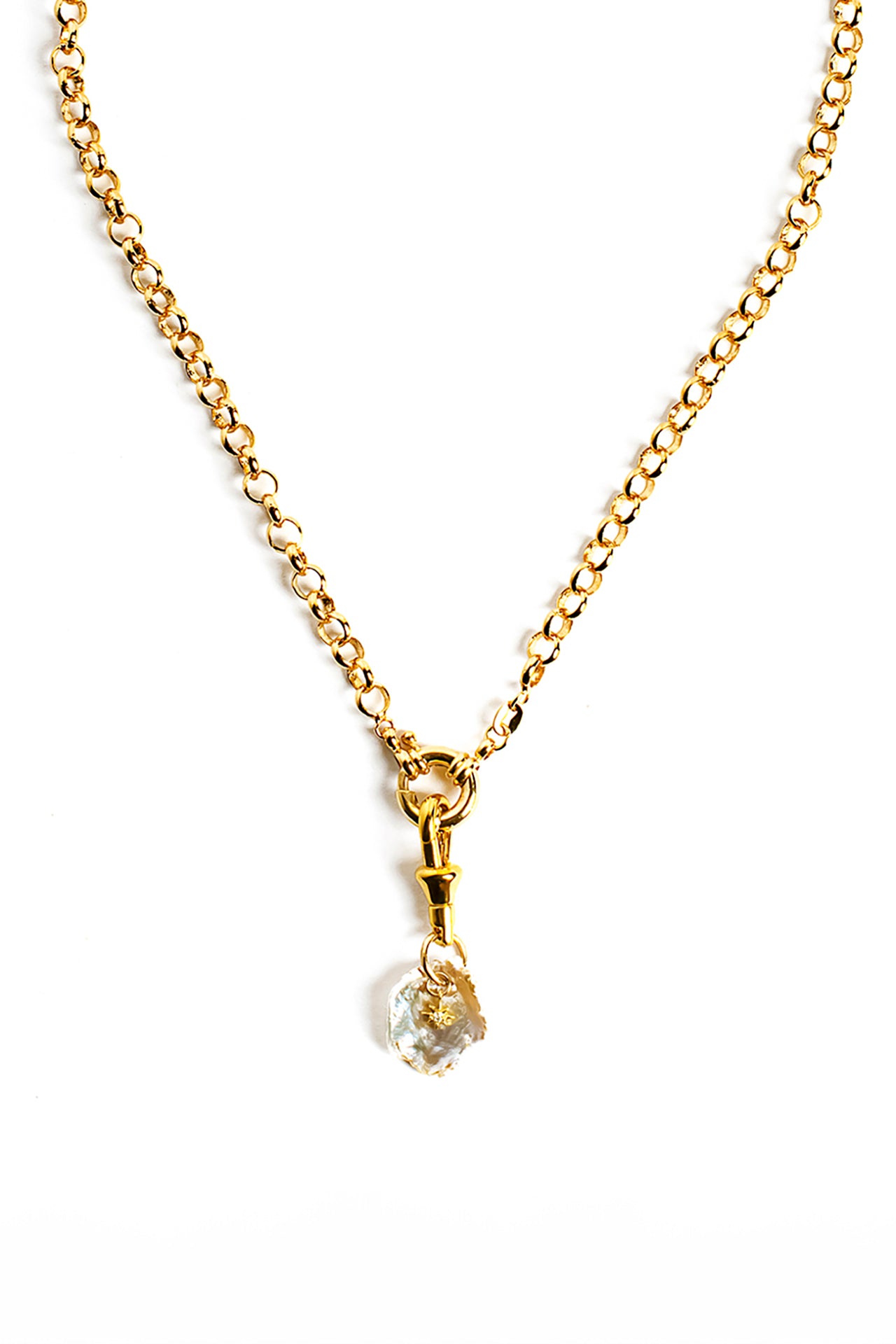 This beautiful necklace features a white flat natural keshi pearl like pendant and a CZ charm on a 18k gold filled chain. Keshi pearls are unique and one of a kind so sizes and shapes will vary.