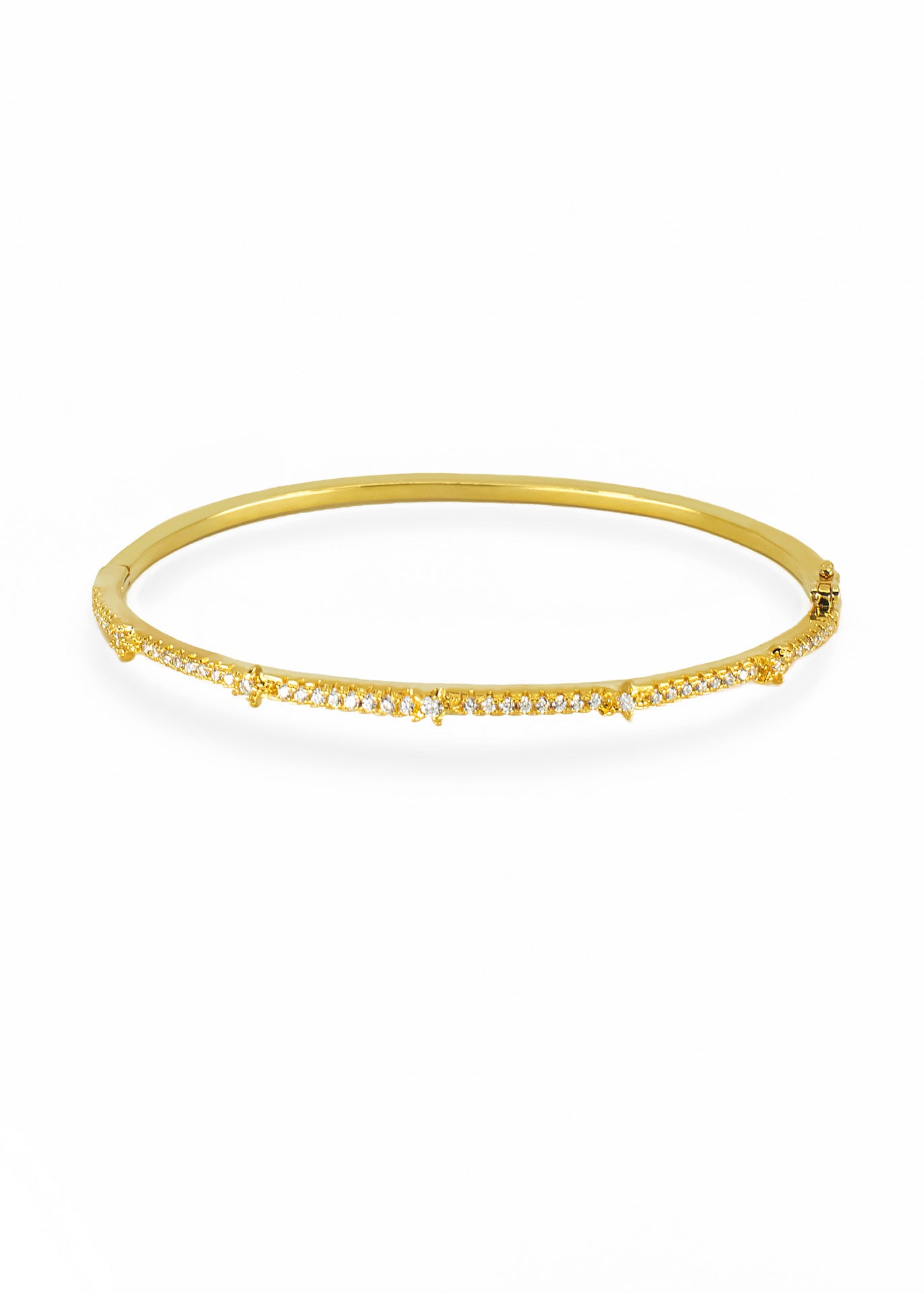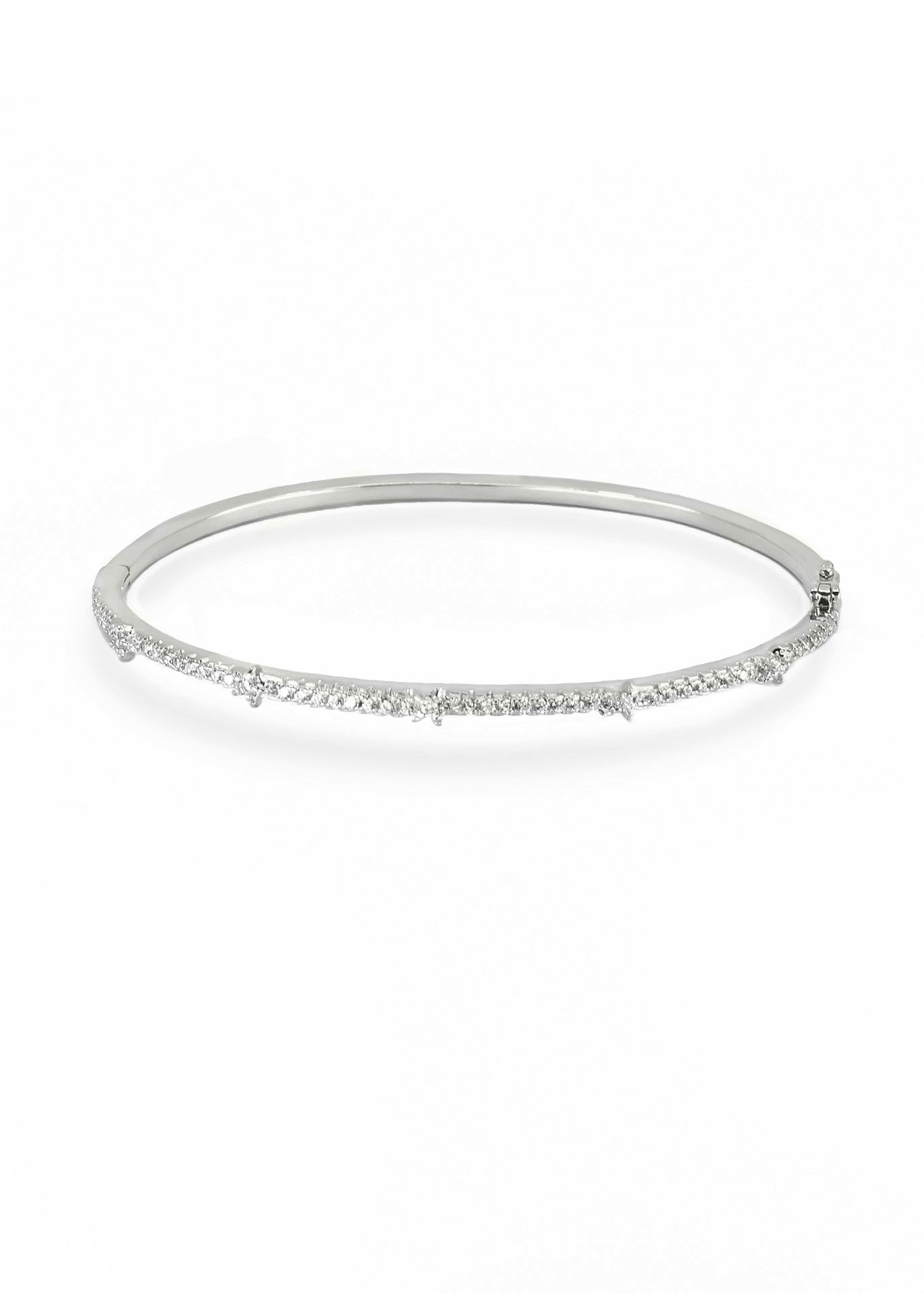 This gorgeous bangle features dazzling CZ stones, is the perfect amount of glamour to any outfit. This elegant bangle makes a timeless gift for any occasion, and for an easy-to-wear statement piece.