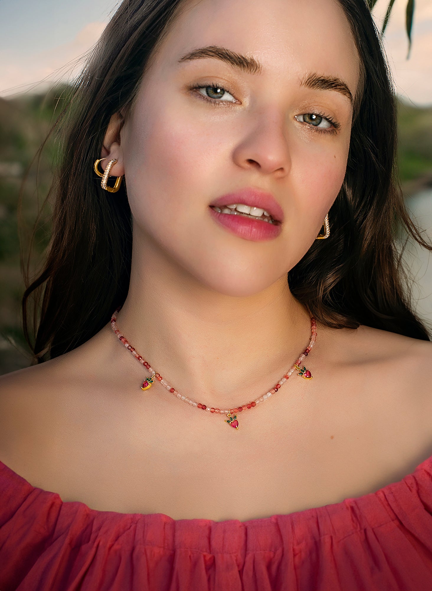 Introduce you a beautiful Rose Quartz Gem Necklace, the perfect colorful addition to any layer. This easy to wear gemstone necklace can be worn solo or layered with your favorite chains for a more dynamic look.