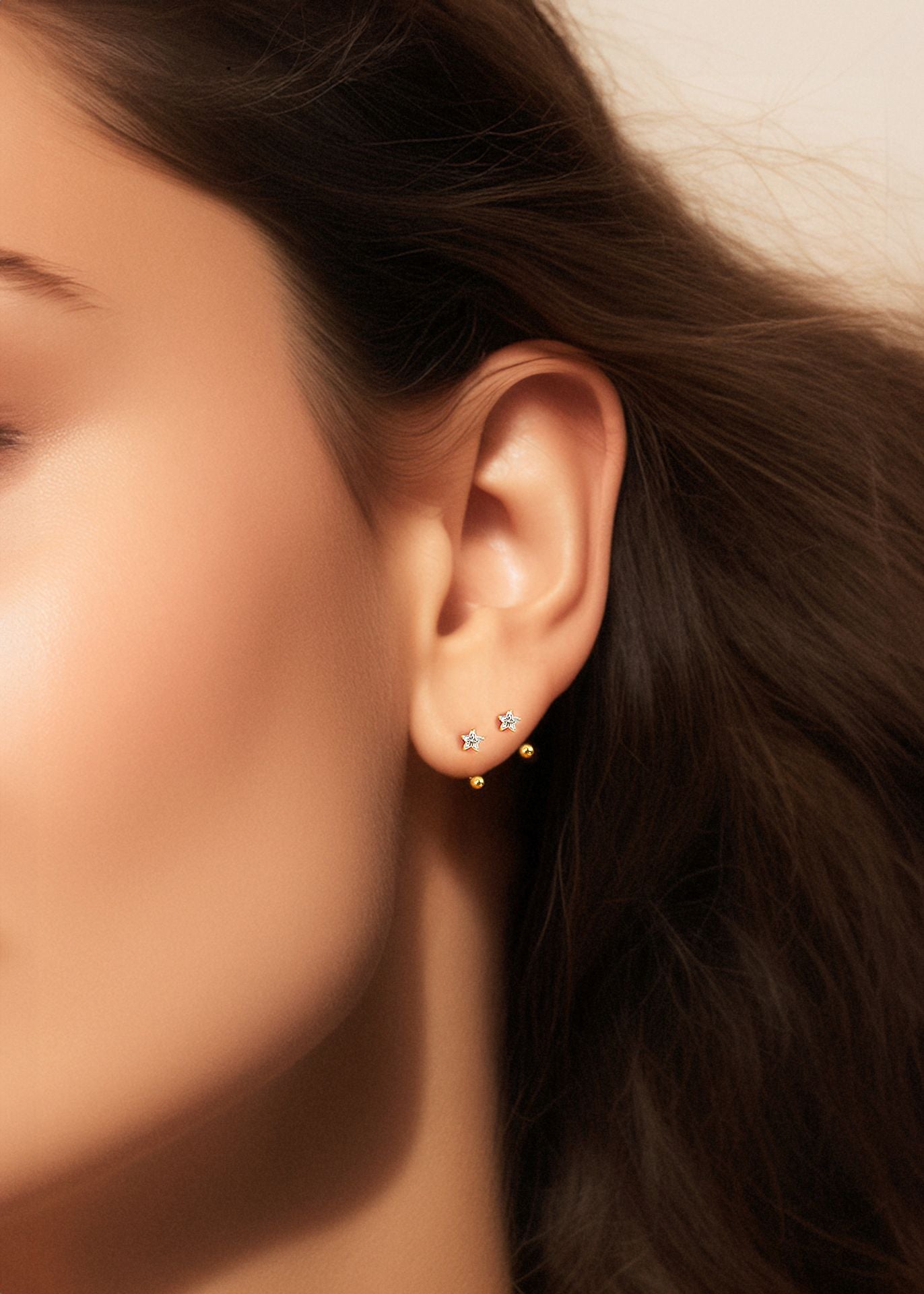 Wish upon a star with these adorable star shaped 5mm gold plated cubic zirconia stud earrings. All pieces are made with allergy safe pure metals.